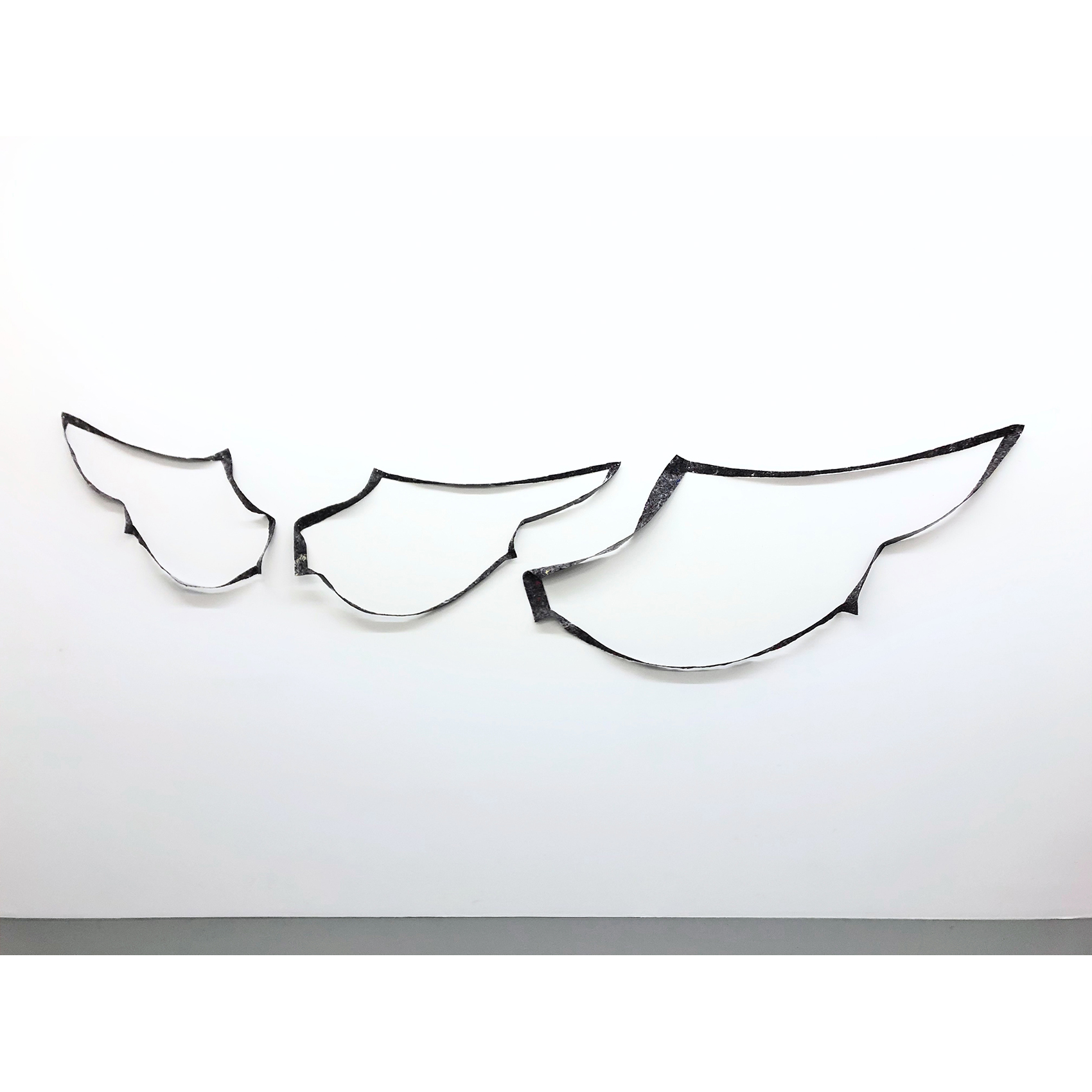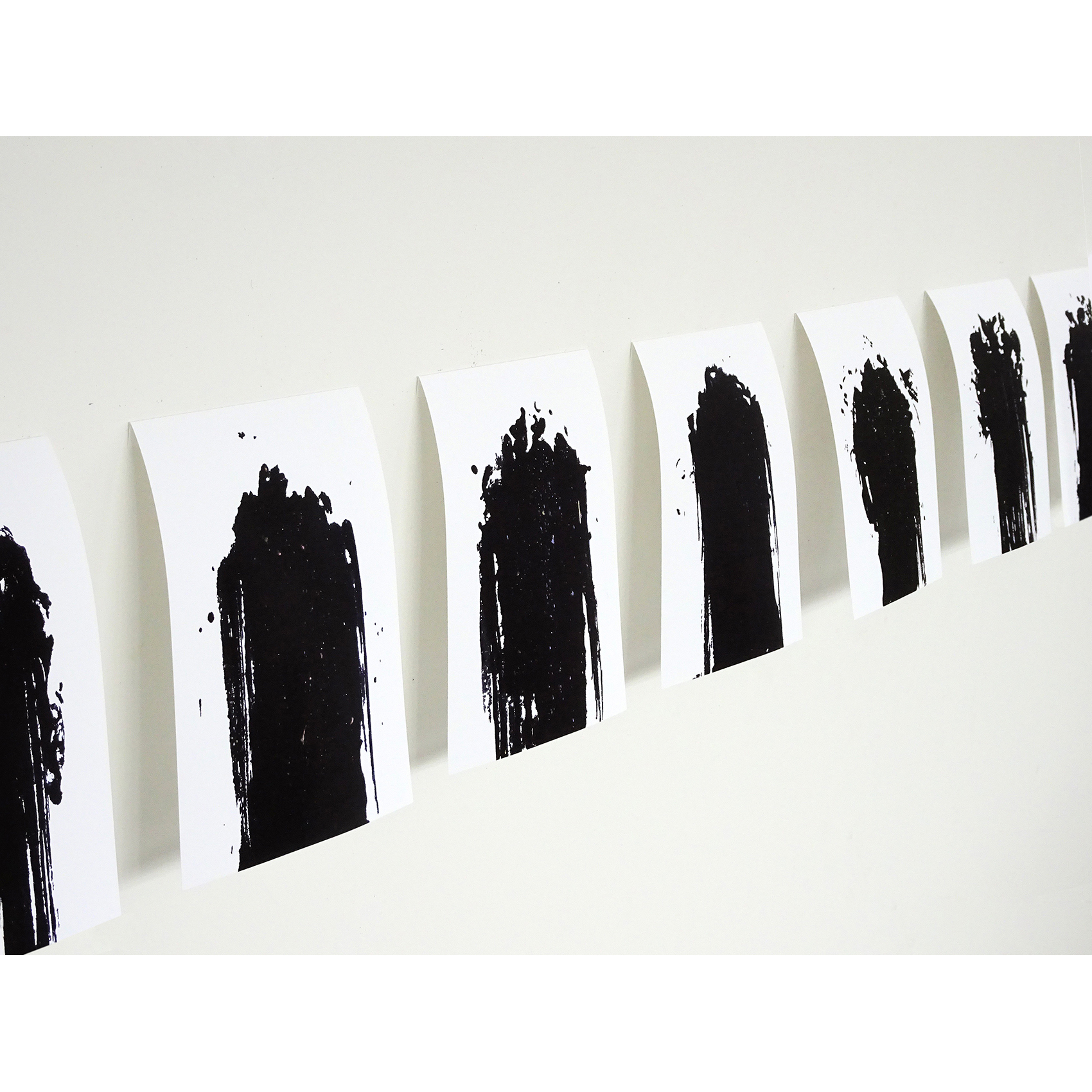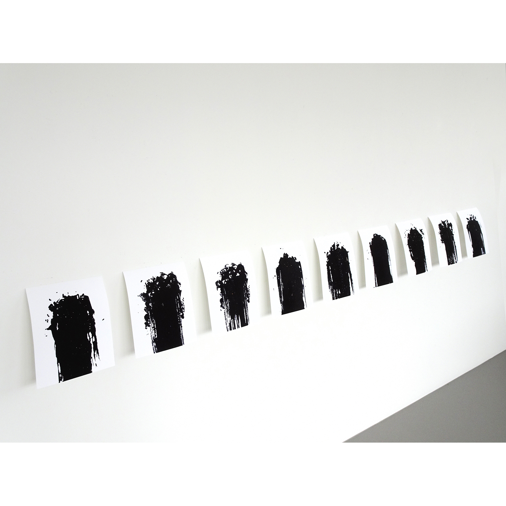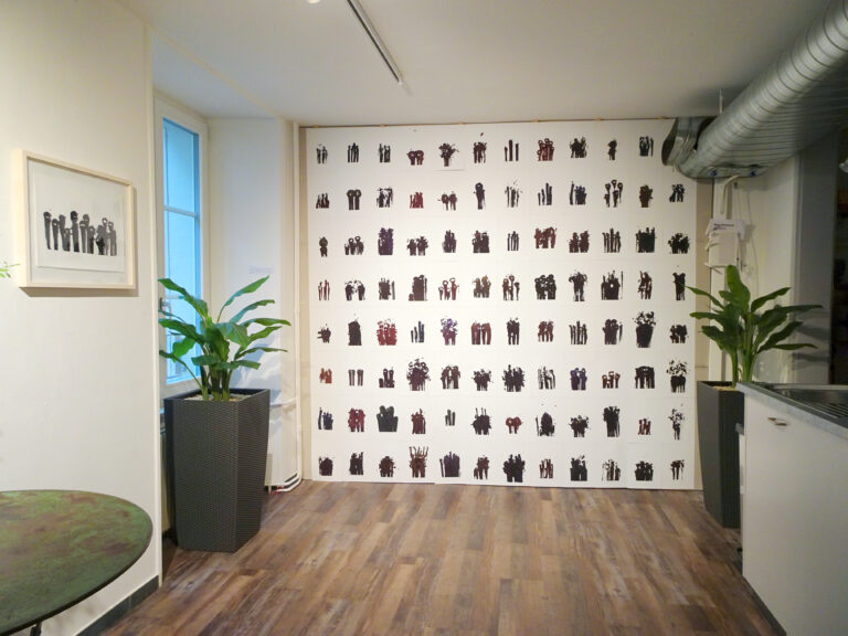 Fruchtsaftlecken, Gruppen Aus dem «Tagebuch» der Flecken», das beim Schneiden von Früchten auf dem Brettchen entstand. Die Reste der Flüssigkeit, fotografiert und im Photoshop freigestellt, ergaben eine grosse Sammlung verschiedenartiger Fleckentypen. Auf der Wand im Café der Apart-Galerie ist eine Auswahl von anthropomorphen Gruppen zu sehen. Im Zusammenhang von TRANSIT-circular, Carea und dem Café verbinden sich assoziativ gesellschaftliche Themen oder beispielsweise Essen und Trinken innerhalb von elementaren Kreisläufen.