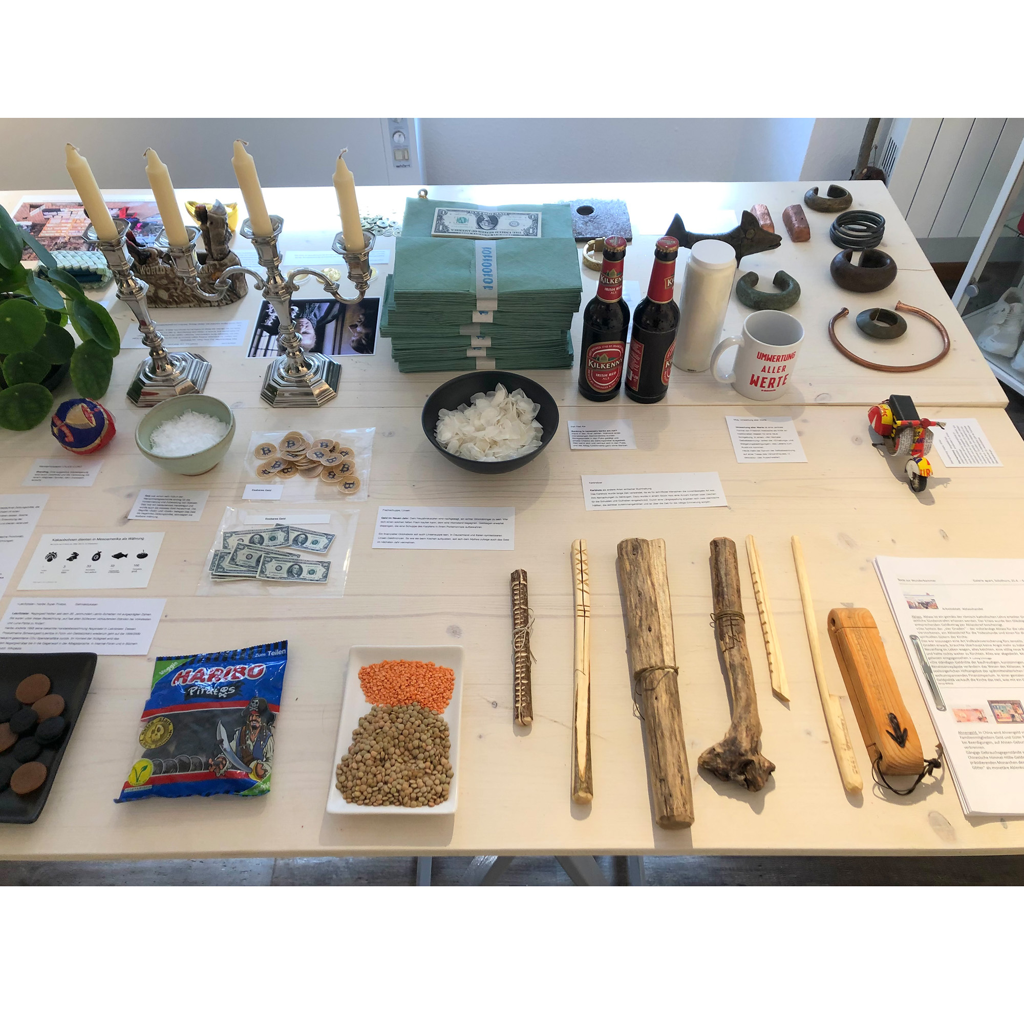 Das Aussergewöhnliche der Kammer waren etwa 150 Gegenstände oder Bilder, die zusammen mit einem Sachtext eine grosse Anzahl unerwarteter Aspekte von verschiedenartigsten Werten, auch immateriellen, aufscheinen liess. Die Besuchenden konnten Dinge anfassen, Münzen schlagen und kuriose Geschichten zu Geld, Währungen und Tausch in vielen Formen erfahren. Die verwandelten Wunschpapiere von Kassel von 2022 wurden durch Einfärben zu Zeugnissen einer stets wachsenden Zahl neuer Wünsche.